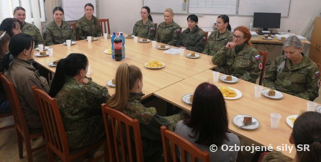 Preto aj naši rakeťaci z Rožňavy nemohli v tento výnimočný deň zabudnúť na svoje kolegyne. Na menšom posedení bol pre prítomné dámy pripravený sladký dezert a kvietok na spríjemnenie ďalších dní. Náčelník štábu mjr. Peter Kalna v mene veliteľa 54. raketometného oddielu pplk. Michala Németha, poďakoval všetkým vojačkám a zamestnankyniam oddielu za ich prácu a podporu a do ďalších dní im poprial mnoho síl.