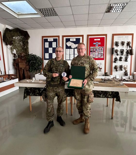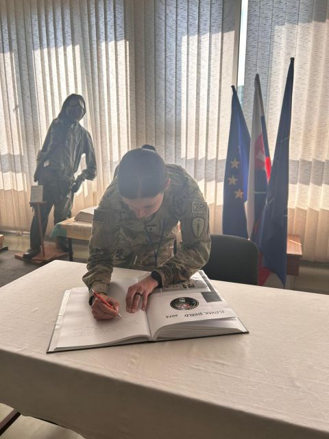 Návšteva 103. práporu RCHBO z NG Indiana Dňa 27.5.2024 počas cvičenia SLSD24 navštívil veliteľ práporu CBRN NG Indiana podplukovník Ben J. WEGNER, spolu s veliacim poddôstojníkom práporu nadrotmajstrom Craig W. DAVIS posádku Rožňava. Na úvod návštevy oboznámil Veliteľ 103.prrchbo pplk. Ondrej ILIŠKO príslušníkov NG Indiana s históriou, hlavnými funkcionármi a poslaním 103. práporu rchbo formou prezentácie. Následne bola vykonaná statická ukážka novozavedených prostriedkov a výzbroje práporu rchbo (dekontaminačné vozidlo - DEKVOZ, VYMOB, MICHL).