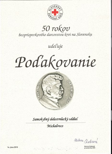 Dňa 16.6.2010 sa v priestoroch Samohybného delostreleckého oddielu v Michalovciach uskutočnila tradičná akcia - darovanie krvi pod názvom „Kvapka krvi“. Tohto podujatia sa zúčastnilo 58 profesionálnych vojakov- dobrovoľných bezpríspevkových darcov krvi. Pri tejto príležitosti Samohybný delostrelecký oddiel v Michalovciach dostal poďakovanie od Slovenského červeného kríža za významný prínos k dobrovoľnému darcovstvu krvi v regióne. Poďakovanie prevzal zástupca veliteľa shdo mjr. Ing. Pavol Barančík a náčelníčka obväziska nrtm. Andrea Guľková. Príslušníci oddielu si uvedomujú veľký význam a prínos dobrovoľného darcovstva krvi a preto budú v tejto ušľachtilej tradícii pokračovať.