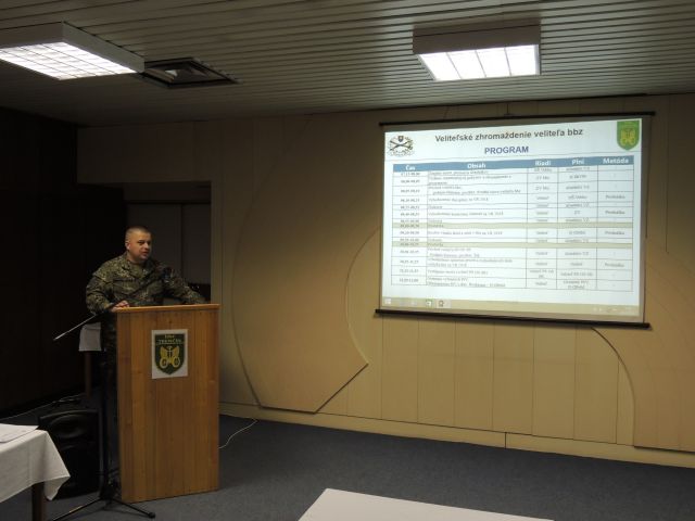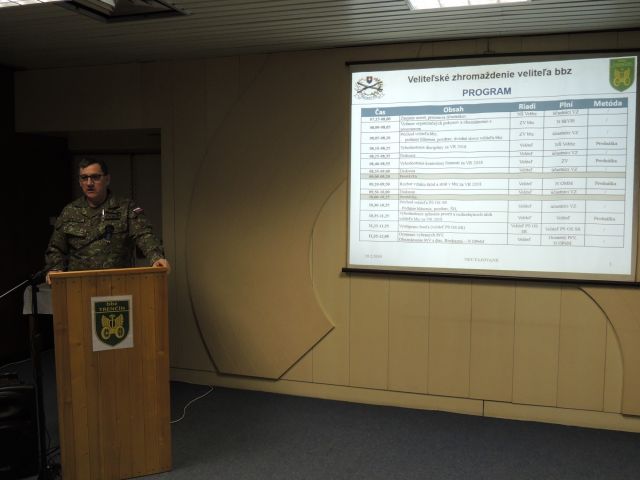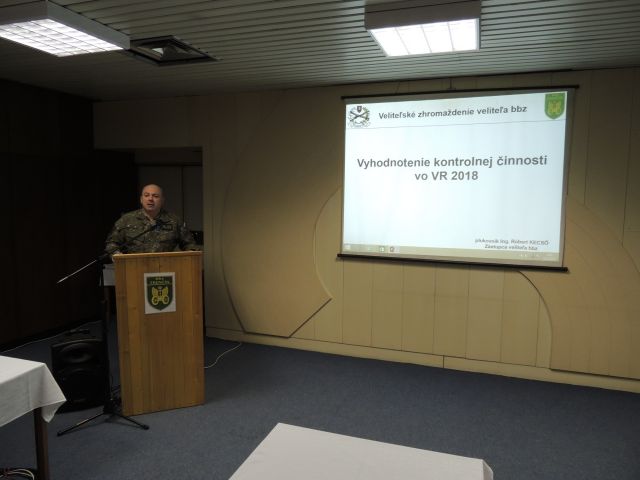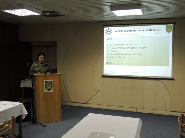 Po úvodnom slove, privítaní prítomných a otvorení programu veliteľského zhromaždenia, ktoré vykonala veliteľka bbz plukovníčka Zuzana Kraushuberová, vystúpila a zhodnotila výsledky disciplíny náčelníčka štábu brigády podplukovníčka Elena Hrabáková a kontrolnú činnosť v podmienkach bbz vyhodnotil zástupca veliteľa brigády plukovník Róbert Kecső. Ďalej po diskusii k vyššie uvedeným bodom programu a krátkej prestávke pokračoval náčelník oddelenia materiálového manažmentu major Peter Bednárik rozborom vzniku škôd a strát v bbz vo výcvikovom roku 2018.