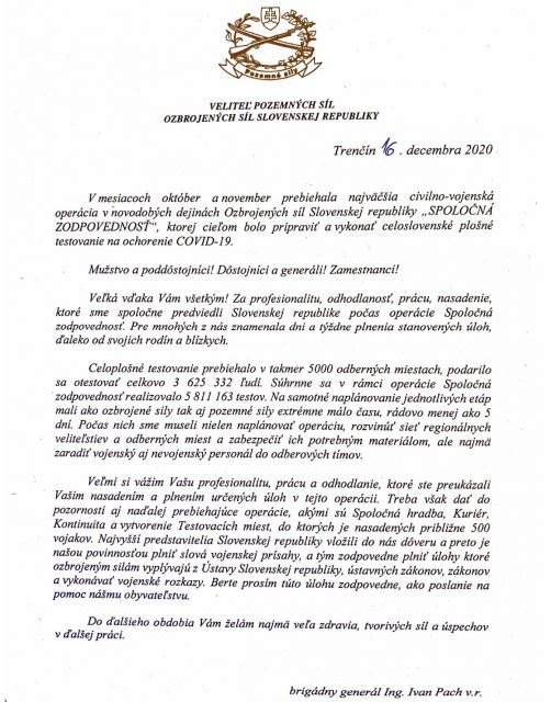 Poďakovanie veliteľa PS OS SR