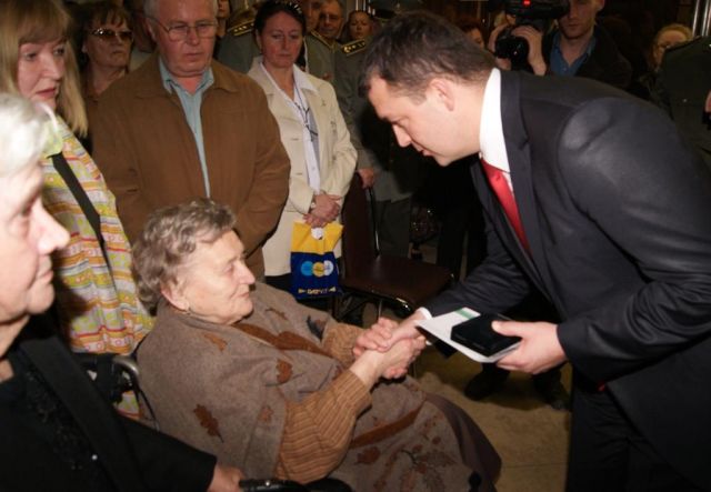 Následne sa uskutočnilo slávnostné ocenenie vojenských veteránov druhej svetovej vojny, ktorého sa zúčastnil aj minister obrany Jaroslav Baška, ktorého na slávnostnom akte sprevádzal predseda Slovenského zväzu protifašistických bojovníkov (SZPB) Pavol Sečkár, primátor mesta Branislav Celler a zástupcovia veľvyslanectiev Českej republiky, Ruskej federácie a Bieloruskej republiky.