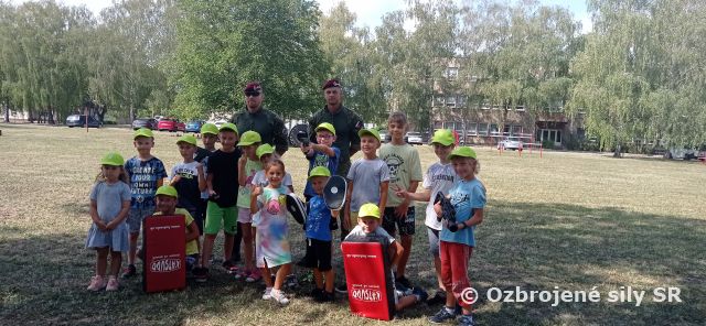 20-prápor logistiky s deťmi Vyše 60 detí sa tento rok vystriedalo na detských denných táboroch 20. práporu logistiky Prešov. Aj tento rok bol pre deti pripravený bohatý program, ktorý pripravili profesionálni vojaci 20. práporu logistiky, ale aj 65. prieskumného práporu. Deti mohli vidieť výstroj a výzbroj profesionálnych vojakov, ale aj vyskúšať čo sa vyskúšať dá. Oblek chemika, podať prvú pomoc, ale aj overiť či platí: bez spojenia nie je velenia. Nakoniec vyskúšali aj čo to z bojových zručností vojaka. Svoje ukážky predviedla aj vojenská polícia, ktorá nás navštívila so psíkom, ktorý sa stal kamarátom detí. Prišli aj hasiči, ktorí deti ohúrili nie len striekaním vody, ale aj veľkými kliešťami, ktoré sa využívajú pri dopravných nehodách. Nechýbala celodenná turistika na hrad Šariš. No a minuloročné vody Dunajca sme tento rok vymenili za výšiny Lanového centra, kde deti prekonávali svoj strach z výšok „hraním sa na Tarzana“. Novinkou, ktorá sa deťom páčila, bolo prespávanie na tábore vo vojenskom stane spojené s opekačkou. Deti si mohli vyskúšať, ako fungujú ich rodičia počas výcvikov a vyvedení. Program pripravila a deťom sa venovala duchovná Ekumenickej pastoračnej služby v Ozbrojených silách pôsobiaca na 20. prápore logistiky v Prešove kapitánka Vlasta Kovaľová.