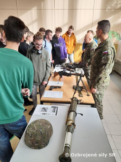 V rámci uvedenej aktivity boli vykonané ukážky výzbroje ručných zbraní, nosného modulárneho systému a ochrannej masky s pláštenkou. Nasledovala diskusia so študentami, ktorí sa individuálnym prístupom zaujímali o uvedené prezentované témy.