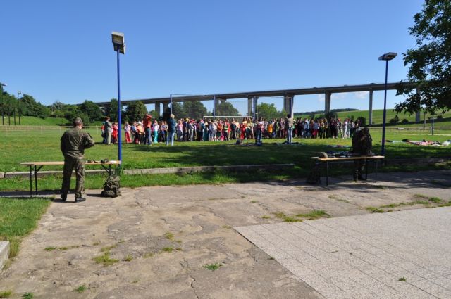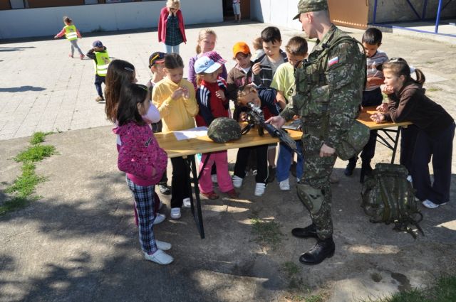 V ďalšom vojaci žiakom predstavili prenosné spojovacie prostriedky používané u jednotiek OS SR, pri ktorej si žiaci prakticky vyskúšali vzájomnú komunikáciu. Najväčší záujem o komunikáciu s prenosnými spojovacími prostriedkami rádiovými stanicami RF-13 a RF 1301 mali najmladší účastníci praktického účelového cvičenia - žiaci materskej školy.