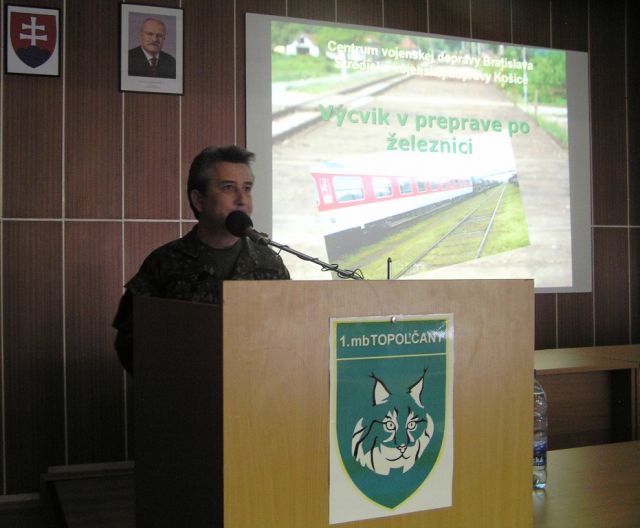 V dňoch 2.-3. mája 2012 vykonali príslušníci veliteľstva, roty podpory velenia a práporu logistickej podpory 1. mechanizovanej brigády (1.mb) výcvik v preprave po železnici. Dvojdňové zamestnanie riadil náčelník odboru logistiky 1.mb podplukovník Rastislav SEČANSKÝ. Odborným garantom zamestnania bol príslušník Strediska Vojenskej dopravy (StVD) poručík Miroslav GOTTHARD.