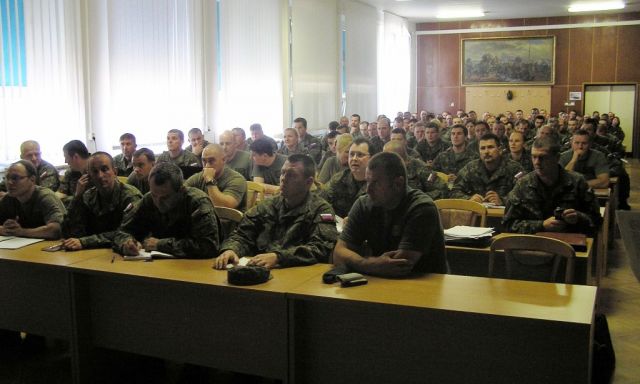 V prvý deň zamestnania – teoretickej časti výcviku oboznámil poručík GOTTHARDT poslucháčov s platnými normami, vysvetlil základné pojmy, rozdelenie vojenských železničných prepráv ďalej pojednal o ich plánovaní, objednávaní a podrobne objasnil samotné vykonanie nakládky a vykládky techniky s jej správnym upevňovaním. Prednášajúci svoju prezentáciu obohatil o krátky videozáznam stavby univerzálnej nakladacej oceľovej rampy (UNOR) a uviedol mnoho kladných i negatívnych príkladov z vlastných skúseností nielen z výcviku, ale aj zo samotného vykonávania vojenskej prepravy. Priebeh zamestnania si prišiel osobne pozrieť zástupca veliteľa 1. mb plukovník Zoltán IBOŠ, ktorý poukázal a zdôraznil význam výcviku v oblasti prepravy vojsk po železnici.