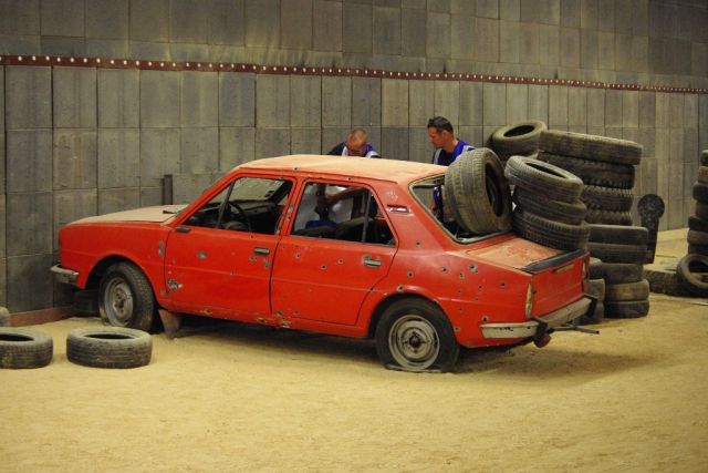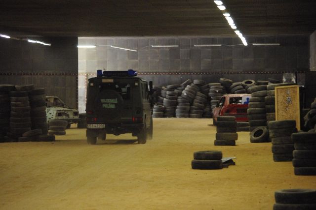 Popoludňajší program cvičenia bol situovaný do priestorov JAKUB VILLAGE, motohaly a pešej haly, ktoré sú prispôsobené na streľbu ostrou muníciou. V motohale bol pre príslušníkov SkRKS pripravený strelecký parkúr s námetom udržanie prejazdnosti stanovenej trasy hliadkou Vojenskej polície presúvajúcou sa vo vozidle. Po vjazde do motohaly mali cvičiaci počas prejazdu halou vyriešiť z idúceho vozidla terčový manéver postavený z kovových a papierových terčov. Program v pešej hale bol zameraný na vstupy a prehliadku miestností, v ktorých sa môžu nachádzať nebezpečné a ozbrojené osoby, prípadne aj ich rukojemníci. Tu si príslušníci SkRKS vyskúšali a precvičili taktiku, postupy a velenie v tíme, ktoré používajú pri uvedených činnostiach.
