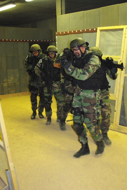 Druhou časťou dopoludnia bol hodnotený vstup a prehliadka miestností spojený s ostrou streľbou v pešej hale v časti JAKUB VILLAGE. Tu sa hodnotili taktika a postupy tímu ako celku a velenie tímu lídrom skupiny.