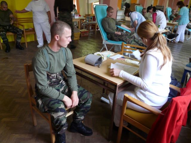 V priebehu druhého výcvikového týždňa základného vojenského výcviku bolo vďaka vynikajúcej spolupráci Národnej transfúznej stanice – pracoviska Martin s príslušníkmi Práporu výcviku už tretí krát v tomto roku organizované bezpríspevkové darovanie krvi. Medzi darcami, ktorí sa stretli v priestoroch Posádkového klubu, boli aj hlavní funkcionári Práporu výcviku (ďalej len PrápV), zástupca veliteľa PrápV mjr. Ing. Nikola Vicena, náčelník štábu PrápV mjr. Ing. Róbert Meško a veliteľ Výcvikovej jednotiky vojenských misií pplk. Ing. Ladislav Kisel. Okrem 16 profesionálnych vojakov stáleho stavu sa darcovstva zúčastnilo aj 34 darcov z radov frekventantov kurzov a príslušníkov roty základného vojenského výcviku, z ktorých bolo až 22 prvodarcov.