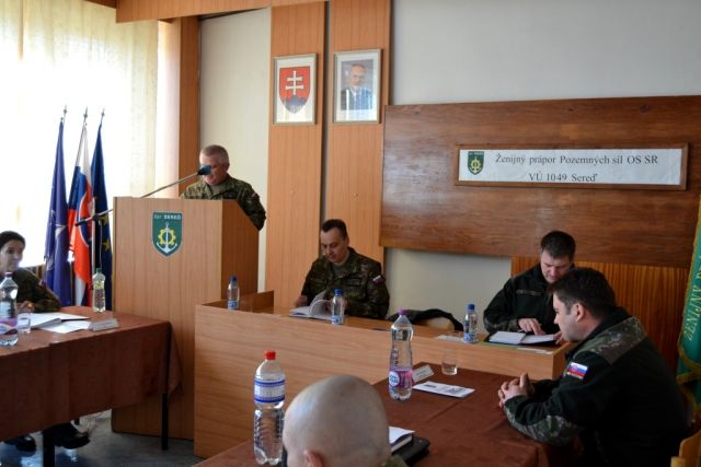 Veliteľ práporu podplukovník Ľubomír Mrváň privítal účastníkov veliteľského zhromaždenia na pôde ženijného práporu. Veliteľského zhromaždenia sa zúčastnil aj zástupca náčelníka Štábu veliteľstva Ppozemných síl plukovník Milan Mezovský a veliaci poddôstojník Pozemných síl štábny nadrotmajster Rastislav Bodnár.
