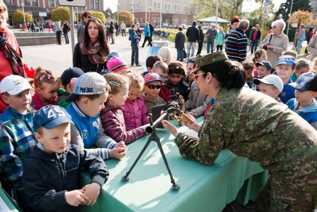 Statické ukážky zbraní a techniky, používanej v Ozbrojených silách SR predstavili príslušníci 1. mechanizovanej brigády Topoľčany.