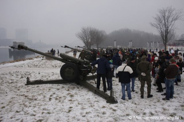 Delostrelci z michalovského samohybného delostreleckého oddielu dnes privítali Nový rok v Bratislave na Tyršovom nábreží. Dvadsať slávnostných sálv zaznelo z nábrežia presne o 14.00 pri príležitosti 22. výročia vzniku Slovenskej republiky a Ozbrojených síl SR.