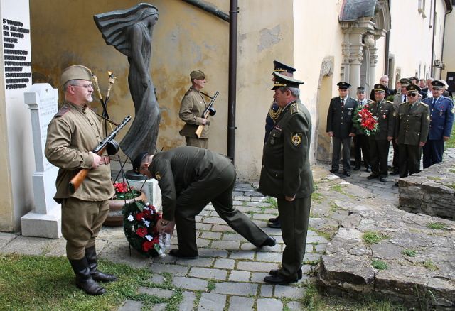 Čestné salvy počas hrania štátnej hymny vypálili príslušníci Práporu logistickej podpory 2. mechanizovanej brigády Prešov. Účastníci osláv položením vencov a kytíc vzdali hold a úctu všetkým padlým, ktorí obetovali za našu slobodu to najcennejšie, svoje životy.