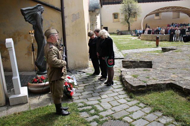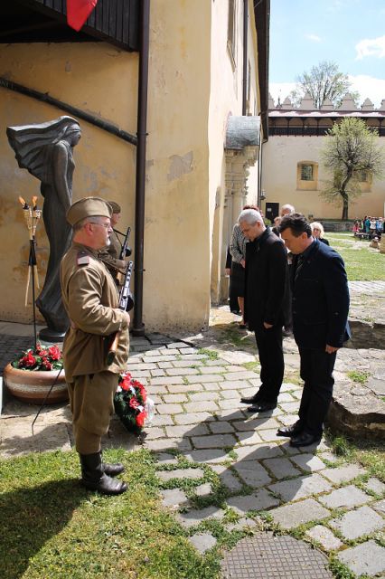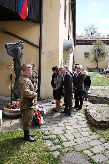 Oslavy 70. výročia ukončenia 2. svetovej vojny pokračovali na nádvorí Kežmarského hradu pri Pamätníku popravených vojakov a partizánov. Vo svojom príhovore prednostka Okresného úradu Kežmarok pripomenula prítomným udalosti najväčšej a najkrvavejšej vojny v dejinách ľudstva. Slávnostnú báseň predniesol žiak 9. triedy Základnej školy Hradná.