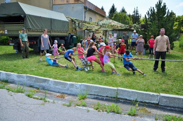Ani po náročnej pešej túre malým rysom nezmizol úsmev z tvári a pomaly sa  presunuli do priestorov Jaselských kasárni, kde bol pre nich prichystaný pravý vojenský guláš. V popoludňajších hodinách, posilnení  obedom, boli opäť deťúrence pripravené na ďalšiu časť programu. Hádzanie balónov naplnených vodou, preťahovanie lanom, beh cez prekážky, boli iba zlomkom súťažných disciplín, počas ktorých si mali možnosť zmerať svoje sily už aj za asistencie svojich rodičov.