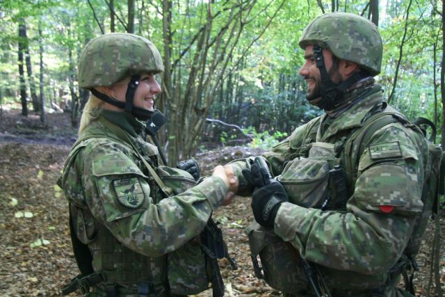 Neďaleko tankistov zaujali v lese postavenie aj príslušníci prvej mechanizovanej čaty poručíka Ladislava Čániho. Pri plnení úloh si našli čas aj na krátku gratuláciu. Veď ich kolegyňa, vojačka Tímea Kocsiová práve na Lešti v priebehu cvičenia oslávila svoje narodeniny. Pre rodáčku z Veľkých Kapušian a absolventku strojárskej fakulty košickej technickej univerzity je cvičenie ďalšou cennou skúsenosťou. Rovnako aj pre príslušníkov 71. mechanizovaného práporu Armády Českej republiky z Hraníc na Morave pod vedením kapitána Zdeňka Havalu. A to napriek tomu, že v uplynulom období pôsobili najmä v operácii ISAF v Afganistane. „Spolupráca so slovenskými vojakmi, ako aj z ostatných armád pri plnení úloh cvičenia je veľmi dobrá. Na Slovensku sme na cvičení po prvý raz. Na Slovenský štít sme sa pripravovali v podmienkach VVP Libava,“ konštatuje kapitán Havala, ktorý vysoko oceňuje možnosti Centra výcviku Lešť pre prípravu vojakov.
