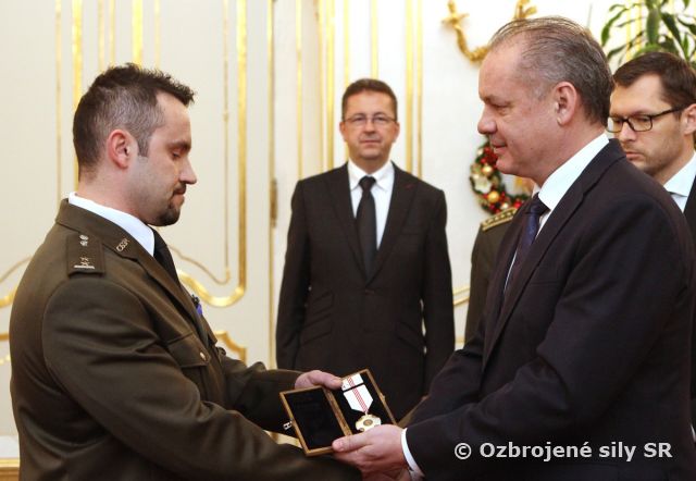 Prezident Andrej Kiska dňa 17.12.2015 v Prezidentskom paláci udelil profesionálnemu vojakovi Ozbrojených síl SR rotnému Andrejovi Adamkovi vojenskú medailu Za statočnosť.