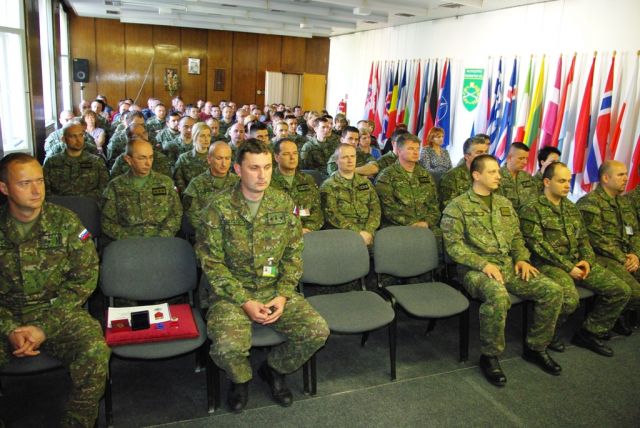 Po prečítaní rozkazu prezidenta Slovenskej republiky vyzdvihol veliteľ pozemných síl OS SR generálmajor Ondřej Novosad význam tohto dňa, objasnil jeho historický pôvod, jeho miesto v dejinách druhej svetovej vojny a zároveň upozornil na hrozby súčasnej doby. Zároveň ocenil vybraných profesionálnych vojakov veliteľstva za osobitný prístup k plneniu úloh štátnej služby pamätnou medailou ministra obrany SR, vojenským krížom za vernosť a čestnými odznakmi OS SR a náčelníka Generálneho štábu OS SR.