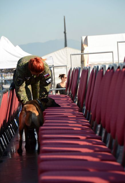 O bezpečnostnú pyrotechnickú prehliadku priestorov VIP sa postarali príslušníci oddelenia kynológie OVaK VP.