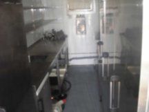 - Na ľavom boku vzadu a vpredu sú dva otvory o rozmere 900 x 1950 mm. Oba otvory sú určené pre priechod medzi kontajnermi KUCHYŇA A a B. Sú pevne uzavreté hliníkovými plechmi, ktoré sú označené poradovým číslom (rovnaké označenie je na ráme otvorov). Pred spojením kontajnerov KUCHYŇA A+B sa tieto plechy odskrutkujú a ukladajú do priestoru pod kontajner ISO 1C KUCHYNSKÝ "A".