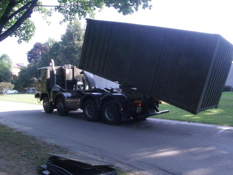 Príprava statickej ukážky vojenskej techniky - vykládka vozidla