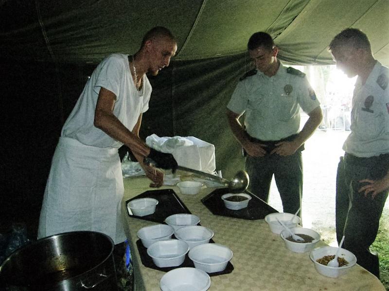 Výdaj stravy - vojenského guľášu príslušníkmi Opravárenského práporu Martin