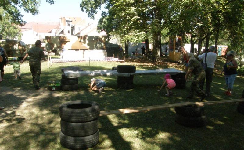 Príslušníci 13. mpr Levice pripravili pre deti prekážkovú dráhu a odmeňovali deti za jej zdolávanie