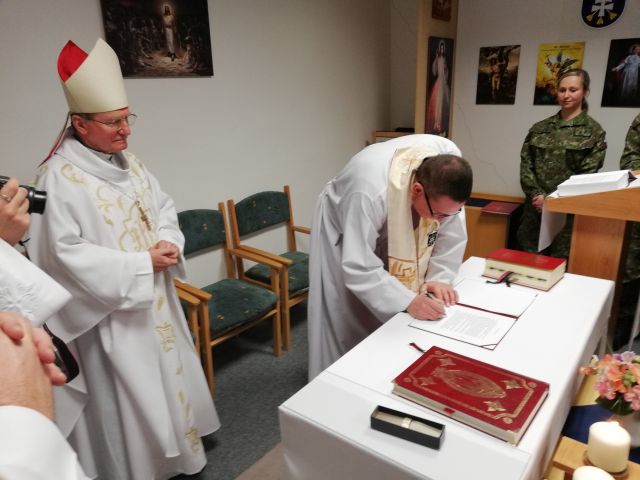 Počas tejto príležitosti Mons. František Rábek celebroval svätú omšu, počas ktorej nový starší kaplán zložil katolícke vyznanie viery a prísahu vernosti. Vo svojej homílii Mons. František Rábek nadviazal na liturgické čítanie z Prvej knihy Samuelovej o poslaní Dávida viesť jemu zverený ľud po ceste života k spáse. Svätej omše sa zúčastnil aj veliteľ brigády bojového zabezpečenia plukovník Jozef Ševčík a nová náčelníčka štábu brigády bojového zabezpečenia podplukovníčka Elena Hrabáková.