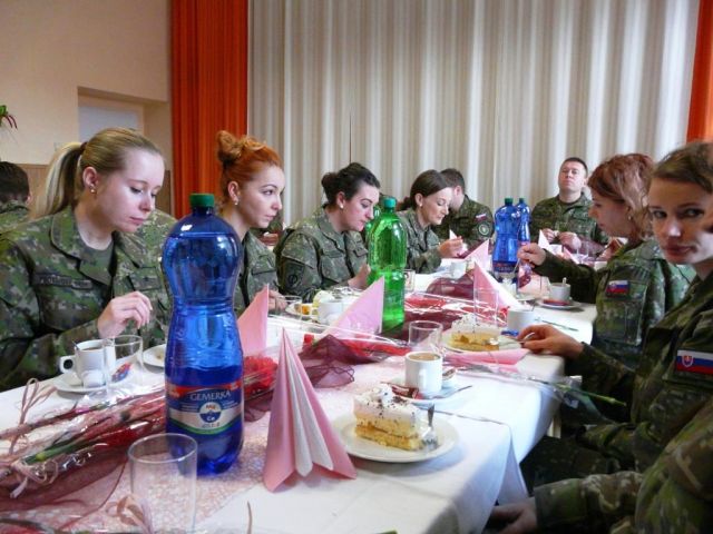 Medzinárodný deň žien V Prápore CSS Prešov sa pri príležitosti Medzinárodného dňa žien 8. marca 2019 uskutočnilo slávnostné spoločenské stretnutie. Všetkým ženám, profesionálnym vojačkám a zamestnankyniam práporu k ich sviatku osobne zablahoželal zástupca veliteľa práporu major Vladimír Sobek. Každej z prítomných žien odovzdal kvet na znak vďaky a úcty. Vo svojom príhovore poďakoval ženám za to, že pôsobia aj vo vojenskom prostredí, svojou osobnosťou a prístupom kultivujú vojenské pracovné prostredie. Poďakoval im za množstvo vykonanej práce s hlbokým zmyslom pre detaily, od ktorých neraz závisí úspech celého útvaru. Vážené kolegyne, profesionálne vojačky a zamestnankyne! Všetko najlepšie !!! Ďakujeme Vám.