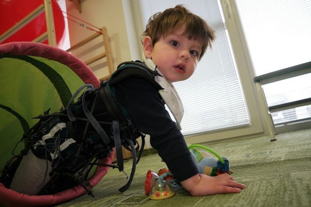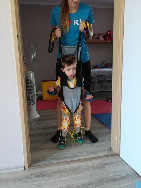 „Náš Aďo sa narodil s PEC (tzv. konská noha). Nohy mal úplne stočené do vnútra. To bola však len jeho prvá diagnóza, ktorou sa začal náš dlhý boj. Celkom tesne po narodení absolvoval 17 sadrovaní tzv. Ponsetiho metódou v Žiline a v Dolnom Kubíne. Hneval sa a plakal tak veľmi, že dvíhaním ťažkých sadier si privolal obojstranný slabinový pruh veľký ako vajce. Keď mal dva mesiace, čakala ho operácia v Bratislave, pri ktorej bolo potrebné preťať achilovky. Aďo následne 8 mesiacov a 23 hodín denne nosil špeciálne Denis-Brownove dlahy. Aby sme to trochu zľahčili, volali sme ich snowboardy. Toto všetko však zanechalo stopy na Aďovej motorike aj psychike. Pri tom všetkom sa však objavili ďalšie diagnózy - hypotónia stredne ťažkého stupňa a zároveň hypermobilita. Zlá kombinácia - slabý a veľmi ohybný. Vojtovu metódu moja žena poctivo cvičila s našim Aďom od 4 mesiacov. Dennodenne tri či štyrikrát. Plakala niekedy viac ako Aďo. Absolvovali rehabilitačné pobyty, kde sa vo Vojtovej metóde zdokonaľovali, navštevovali sme aj súkromnú rehabilitačnú sestru, precestovali stovky kilometrov. V 16 mesiacoch začal Aďo zo dňa na deň štvornožkovať. Viete si prestaviť ten úžasný pocit napriek tomu, že iné deti v tom veku už dávno chodia? No keď mal Aďo 2 roky bol už na Vojtovu metódu veľký. Museli sme začať hľadať súkromné rehabilitácie, ktoré sú však veľmi finančne náročné. Jedna stojí od cca 3500 eur nahor. Poisťovňa neprepláca nič. Vďaka dobrote a finančnej zbierke od ľudí so srdcom na správnom mieste, sa nám podarilo kúpiť rehabilitačný stôl. Cvičenie doma striedali rehabilitačné pobyty, až sa Aďo postavil na vlastné nohy. Keď postupne opatrne prešiel sám popri nábytku, tak to bolo ako zázrak. Neskutočný krok vpred a slzy v očiach. No na samostatnú chôdzu ho telo ešte nepustí. Všetko chce čas a usilovný tréning. Kvôli hypotónii Aďo dlho neprehĺtal sliny a nechával ich tiecť. Už prehĺta, ale nedokáže požuť potravu. Tým, že mal nohy dlho zafixované, má vo veľa prípadoch ako keby „prehodené“ funkcie rúk a nôh. Pridala sa však aj ďalšia diagnóza. Epilepsia. Nikdy nezabudneme na prvý záchvat, keď sme museli volať RZP pre nášho malého syna. Tá bezmocnosť bola neopísateľná. Aďovi sa po tomto všetkom pomalšie rozbieha hlava. Mozog nepracuje celkom ako má, je spomalený. On však bojuje. Po vertikalizácii (státie) sa začína dorozumievať gestami a začína "brblať". Veríme, že pravidelnými rehabilitáciami je možné, že raz z toho všetkého nám zostane len zlá spomienka. O to viac sa v rámci našich finančných možností snažíme chodiť na rehabilitácie. Pre Aďovú činnosť mozgu by pomohla doporučená delfinoterapia,  tá sa dá absolvovať však len zahraničí a nemôžeme si ju dovoliť. Samotná terapia stojí okolo 4000 eur a nie je v tom zahrnutá doprava, strava ani ubytovanie. Veľmi prospešná je tiež aj oxygenoterapia. Vieme ju zabezpečiť aj doma, ale k tomu potrebujeme kyslíkový koncentrátor. Bol by prospešný aj na jeho svaly, regeneruje mozgové bunky, zlepšuje imunitu, koncentráciu, pozornosť, pomáha na rôzne neurologické poruchy aj epilepsiu. Na rehabilitáciách ho využívame, ale to je málo. Aďo by mal inhalovať každý deň, tak by to malo efekt. Kyslíkový koncentrátor je však pre nás pridrahý. No ak by ste nám pomohli, azda by sme si ho mohli dovoliť.