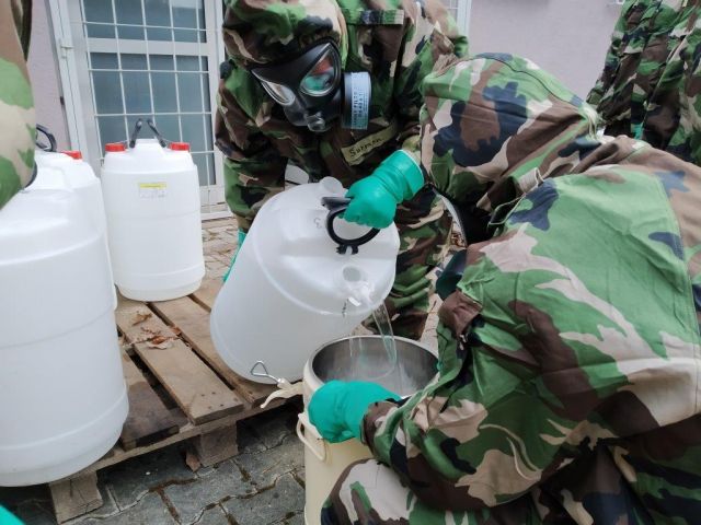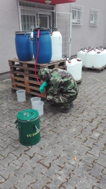 Nezostávame bokom v boji proti COVID-19 Chemici zo Zemianskych Kostolian pripravili už viac ako 1 600 litrov dezinfekčného roztoku. Do výroby bolo zapojených celkovo 12 príslušníkov NC EOD a RCHBO Nováky. Dezinfekčný prostriedok bol pripravený v súlade s odporúčanou receptúrou Svetovej zdravotníckej organizácie (WHO). Roztok obsahuje 80% etanolu (dezinfikuje), približne 1,5% glycerolu (ochraňuje kožu), 0,1% peroxidu vodíka (likviduje spóry) a zostatok tvorí voda, ktorá napomáha alkoholu pri denaturácii vírusu. Dezinfekčný roztok by sa mal prednostne používať tými príslušníkmi OS SR, ktorí pri svojej práci nemajú prístup k vode a mydlu a potrebujú dezinfikovať svoju pokožku, prípadne nejaký drobný nástroj. Distribúcia jednotlivým útvarom a zariadeniam OS SR bola zahájená 26. marca 2020 a doteraz bolo vydaných asi 1350 litrov dezinfekčného gélu. Ďalšia výroba roztoku je závislá na dodávkach vstupných surovín, hlavne etanolu alebo izopropanolu, ktoré sú momentálne ťažko dostupnou komoditou. NC EOD a RCHBO je schopné aj naďalej pokračovať vo výrobe dezinfekčného roztoku pre potreby OS SR. Taktiež sme pripravení poskytnúť v prípade vyžiadania krízového štábu MO SR personál a techniku potrebnú na podporu riešenia núdzového zásobovania obyvateľstva potravinami, PHM a ďalším materiálom. Ďalej vieme v obmedzenej miere poskytnúť sily a prostriedky potrebné na dezinfekciu povrchov a v neposlednom rade je aj náš zdravotnícky personál pripravený pomáhať tam, kde to bude podľa rozhodnutia krízového štábu najviac potrebné.