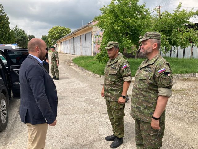 V obedňajších hodinách privítal Jaroslava Naďa veliteľ práporu podplukovník Vincent Csery. Šéfa rezortu obrany sprevádzali zástupca náčelníka generálneho štábu OS SR generálporučík Josef Pokorný a zástupca veliteľa pozemných síl brigádny generál Karol Navrátil.