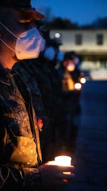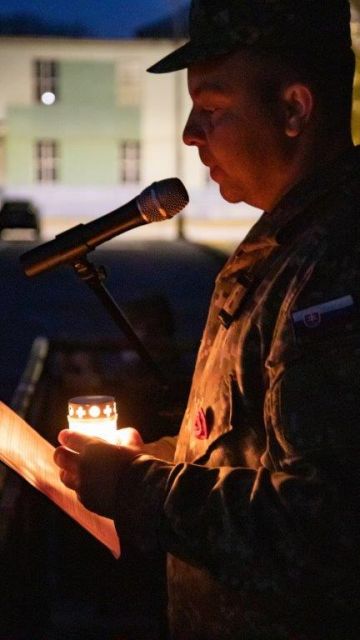 Tradičnú báseň „Na Flámskych poliach“ predniesla nadporučíčka Bliznáková a po jej odznení, za zvukov jej hudobnej podoby „In Flanders fields“, sa príslušníci práporu pobrali položiť sviece k pamätníku padlým v misiách.