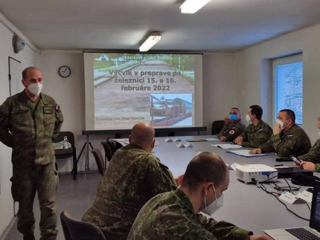 Výcvik v preprave po železnici Príslušníci 14. tankového práporu Trebišov vykonali 15. a 16. februára dvojdňový výcvik v preprave po železnici. Prvý deň výcviku bol zameraný na teoretickú prípravu v priestoroch kasární formou prednášky po skupinách do 10 PrV v súlade s platnými protiepidemiologickými opatreniami za riadenia rotmajstra Petra Dancáka a príslušníka 701. CVD. V úvode druhého dňa, kedy sa konala praktická časť výcviku na železničnej stanici v Trebišove, boli príslušníci 14. tpr a 65.pspr poučení o bezpečnostných opatreniach za riadenia náčelníka štábu 14.tpr majora Rastislava Hachola, počas doby plnenia úloh na pracoviskách 1 až 6. Striedanie na pracoviskách s názvom zabezpečenie ochrany a obrany síl a prostriedkov, označenie a povinnosti funkcionárov, preberanie železničných vozňov, činnosť stráže vojenského nákladu, bojové zabezpečenie v priestore nakládky, výcvik vodičov a veliteľov v navádzaní techniky a výstavba univerzálnej nakladacej oceľovej rampy UNOR bolo zabezpečené vysokou profesionalitou a disciplínou počas predmetného výcviku. Následne bol vykonaný výcvik vodičov pásovej aj kolesovej techniky v praktickej nakládke techniky na samotné železničné vozne, kde si velitelia precvičili navádzanie vodičov na železničné vozne pomocou používania signálov na navádzanie techniky. Výcvik vo vagónovaní techniky bol vykonaný z dôvodu prípravy veliteľov a vodičov vo vagónovaní techniky a na základe kalendárneho plánu 14. tankového práporu Trebišov.